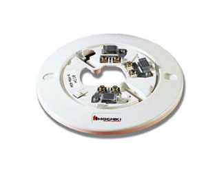 The HOCHIKI America YBN-NSA-4 and the HSB-NSA- 6 mounting bases are electronics free and contain a simple rugged design with screw terminals for wiring connections. A common mounting base allows sensor interchange and maintains loop continuity when sen- sors are removed. A simple anti-tamper head locking system is provided which is enabled by removing a small plastic tab on the back of the sensor. Once locked, the head can only be removed using a small diameter screw driver.